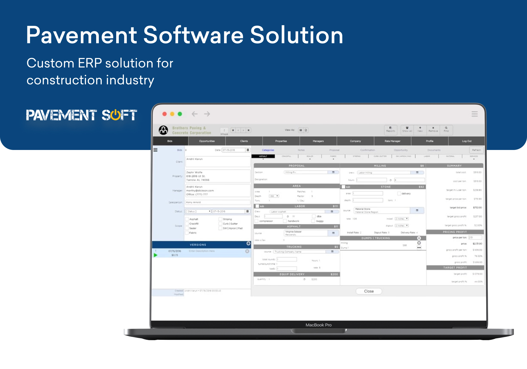 As operator of a construction software company, I needed to transform our basic in-house pavement management tool into a comprehensive cloud-based ERP that we could market to construction and pavement firms.