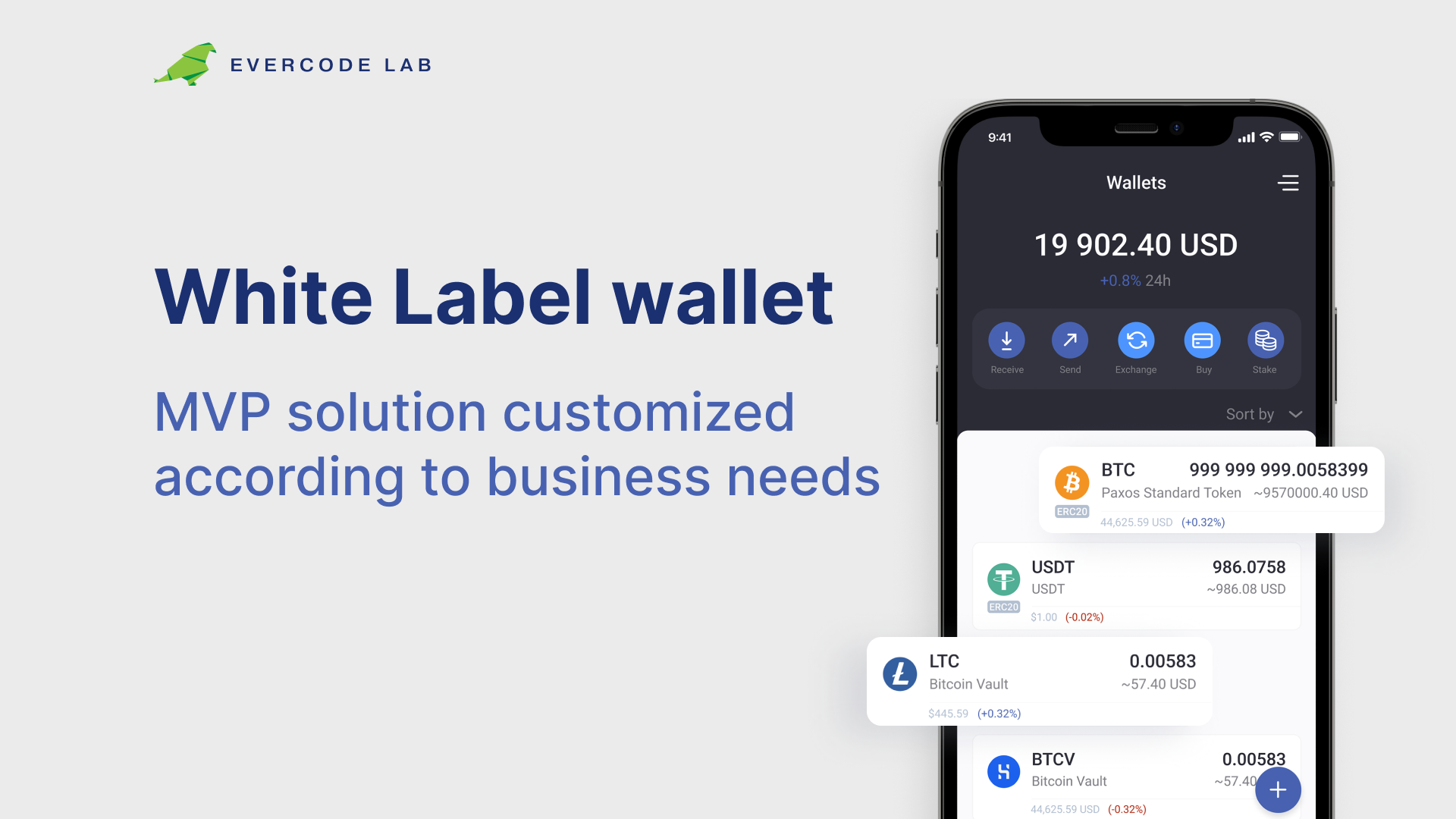 Our team has been providing IT outsourcing services since 2013. We offer a pool of knowledge in such fields as MVP solutions and custom development in blockchain and fintech. Evercode Lab is behind the development of the world's TOP 10 non-custodial crypto wallets such as Guarda, NOW Wallet, LYO Wallet, and many others.
