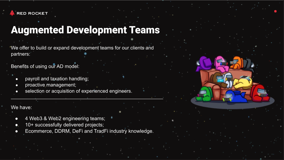 Red Rocket Software is an international IT software engineering company. Our main specialization is the full-cycle development of IT products, from their prototyping to support and maintenance.