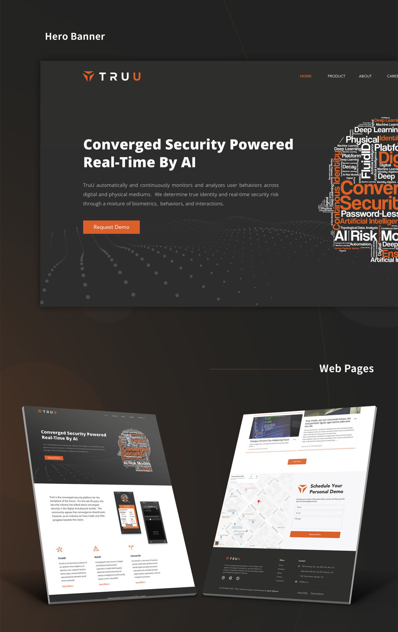 A multi-page website that reflects the work and the products of the brand and that clearly defines the different converged identity that TruU supports plus showcasing the band of people behind the vision of TruU.