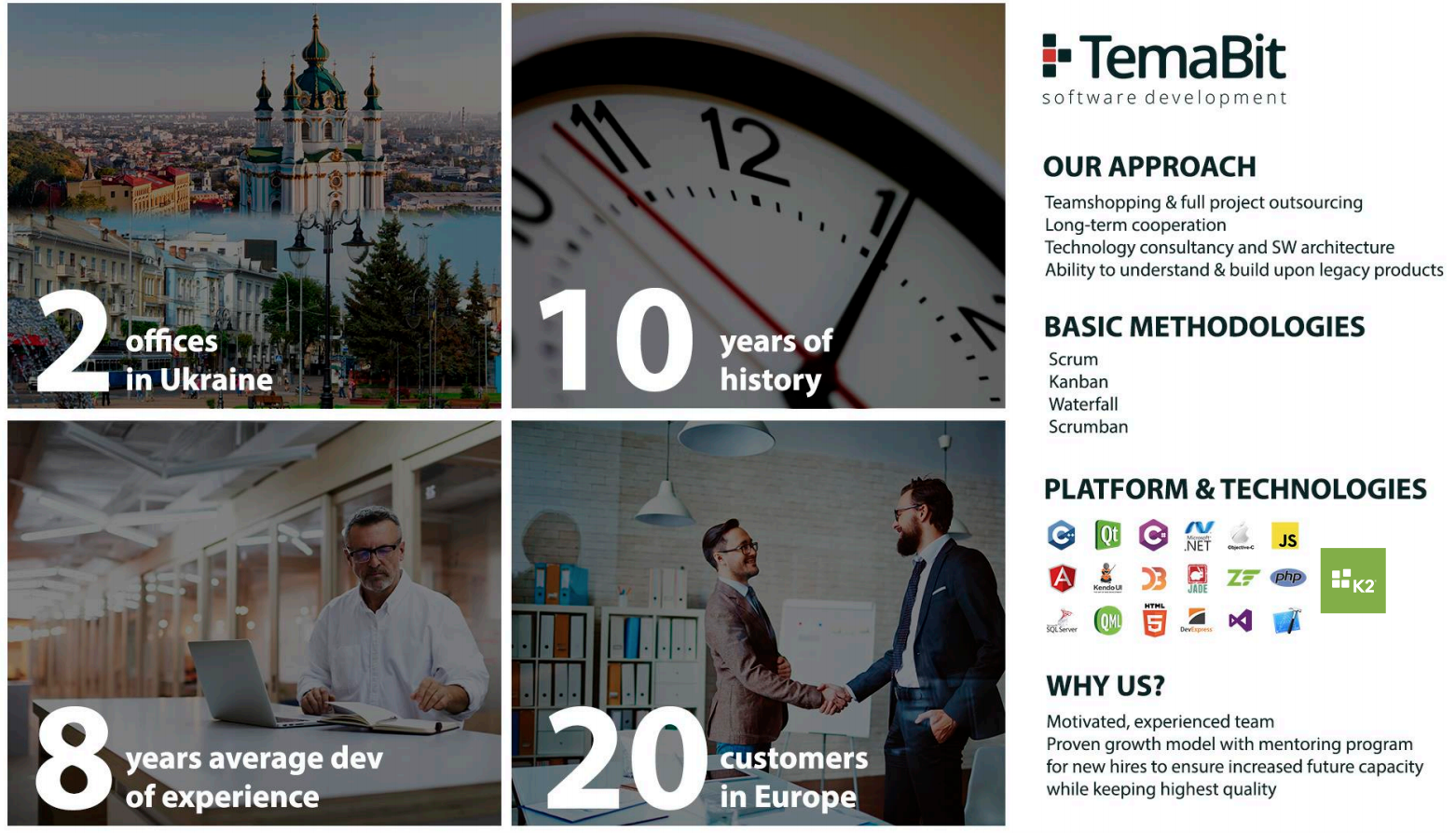 We are related to big retail chain, we do a lot of software development incl. POS, SelfCheckouts, BO, HQ, warehouse, PC based scales and etc. Our expertise includes SW for retail, production facilities, mining facilities etc. We have 2 development offices in Ukraine and 1 - in USA, California.